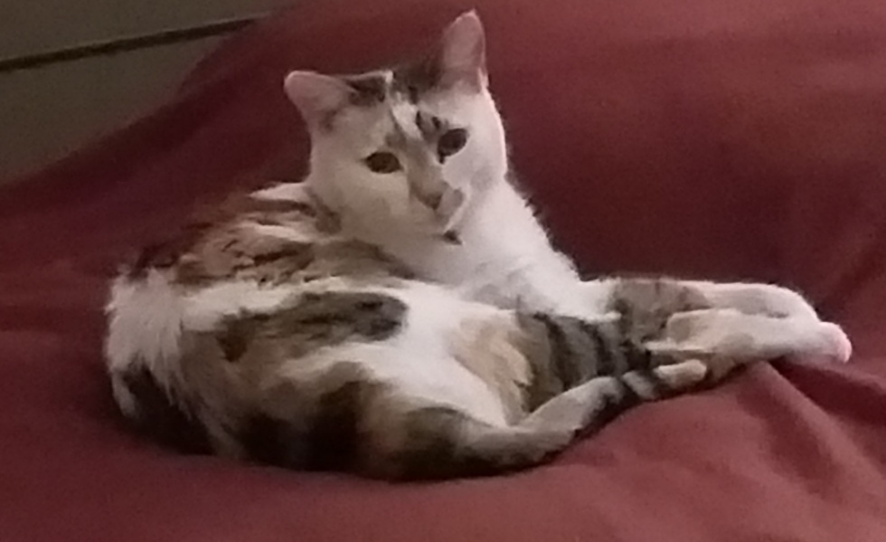 How does your pet enrich your life?Maggie May was a stray that found her way to my sister's farm house. Maggie May came to live with me after my 15 year old dog died. She is a loving and sweet companion. Maggie May comes when I call, cuddles with me and meets me at the door when I come home from work. She has adjusted to being a completely inside cat beautifully and will just look at me and start purring. Maggie May is my darling angel.