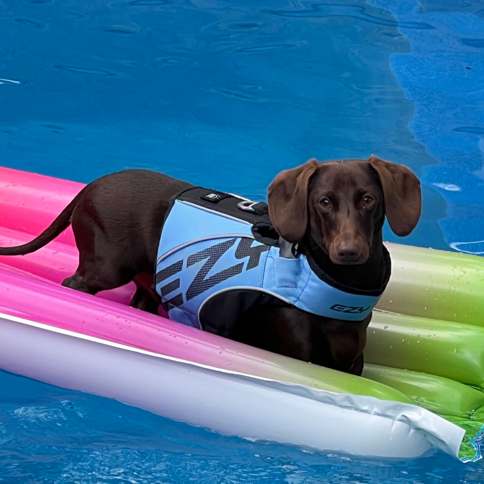 How does your pet enrich your life?He is such an incredibly funny 10 month old mini dach whose always up for lap time and a cuddle. Loves to lay on his back on your chest. Knows so many people by name and is a social butterfly. Has an extensive vocabulary and loves to help out wherever he can whether in the house, garden is always up for a mission of some sort. He loves being chased and then chases in return. Ball games are one of his favourite pastimes and runs at neck breaking speeds to retrieve them. He is loving and a very sweet boy.