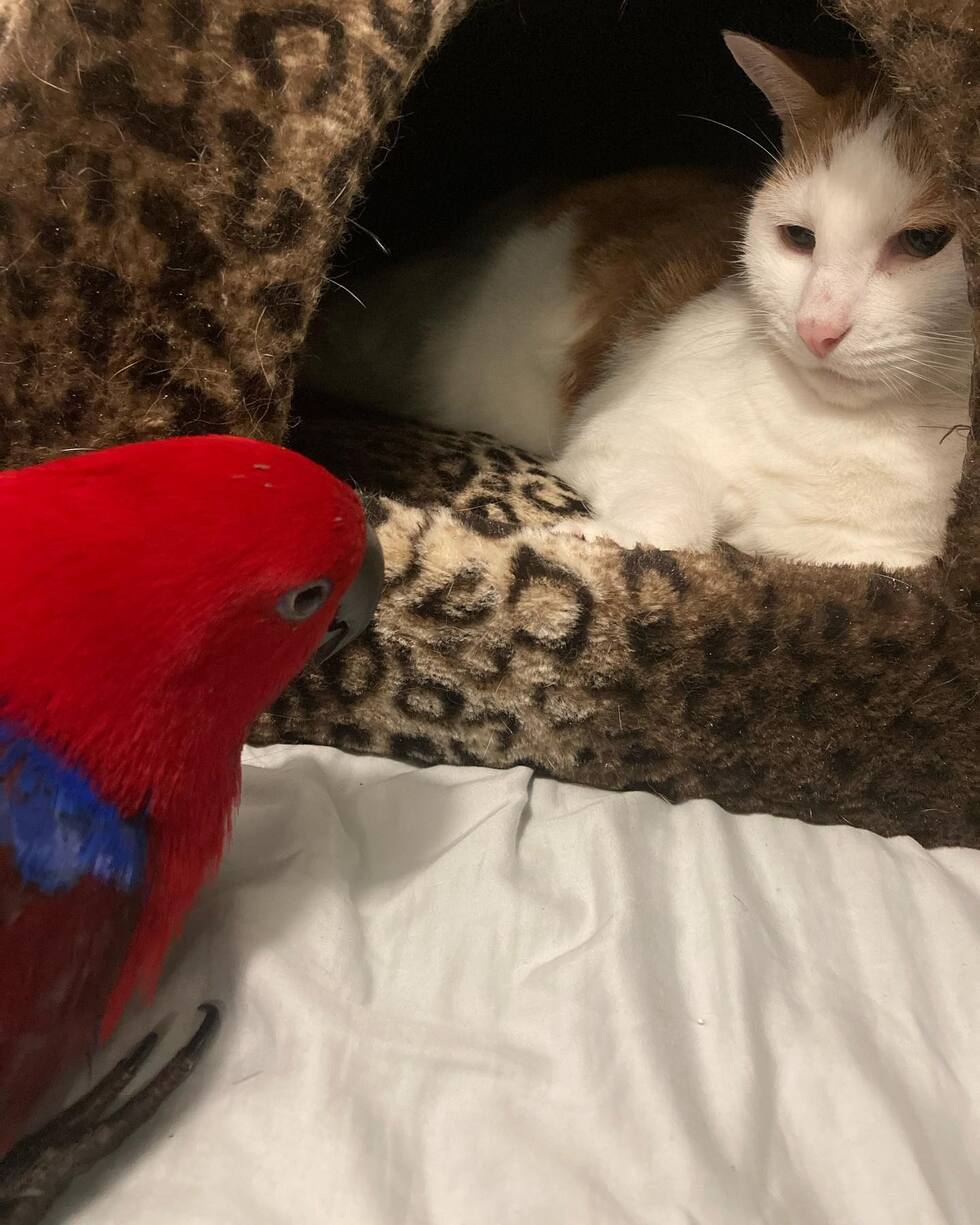 Pet's QuirksYou'd think it's the bird in danger here, but you'd be wrong. Logan may be four times her size, but Elliot rules this roost.