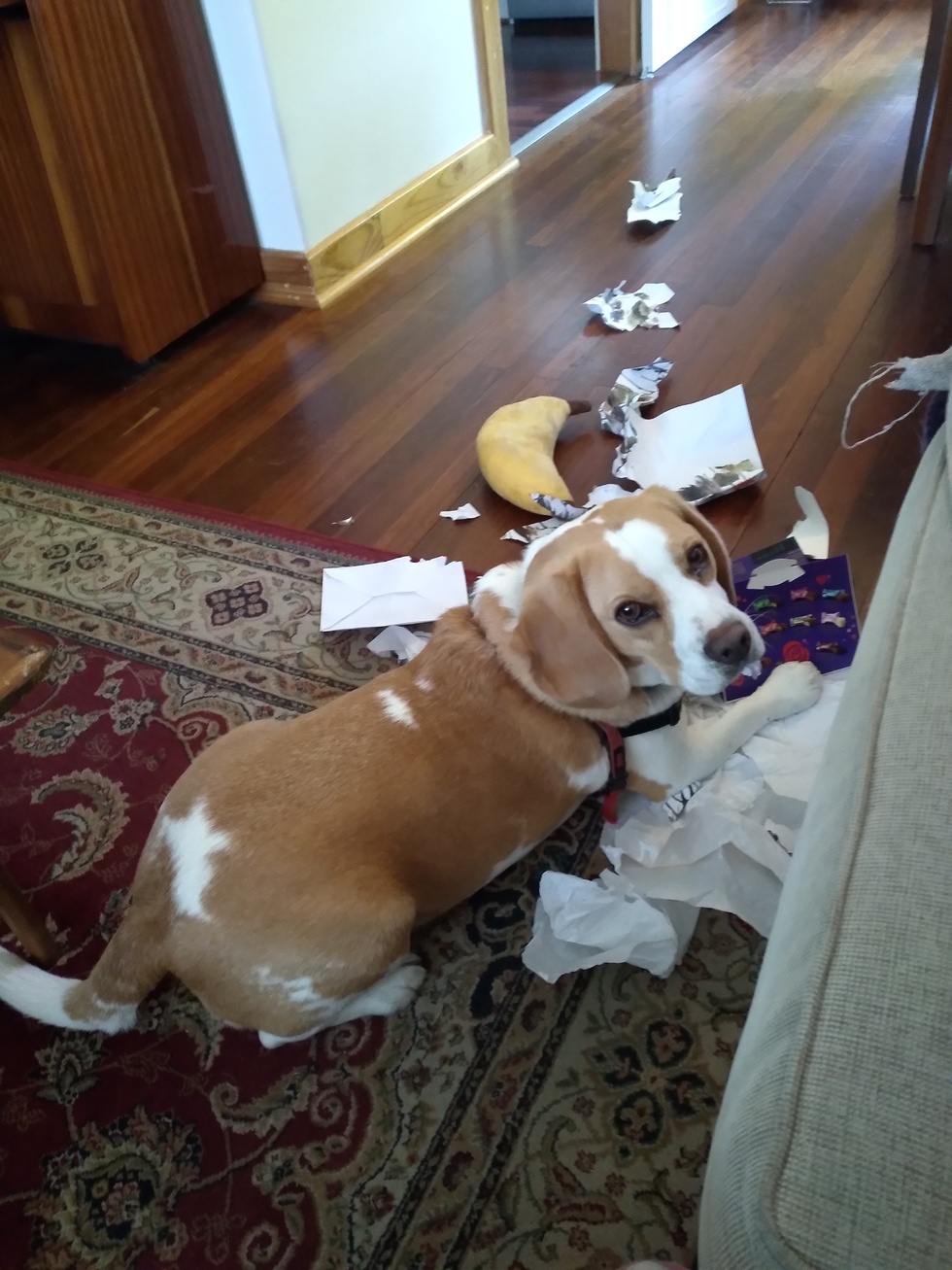 Barks at bees, Loves chewing everything