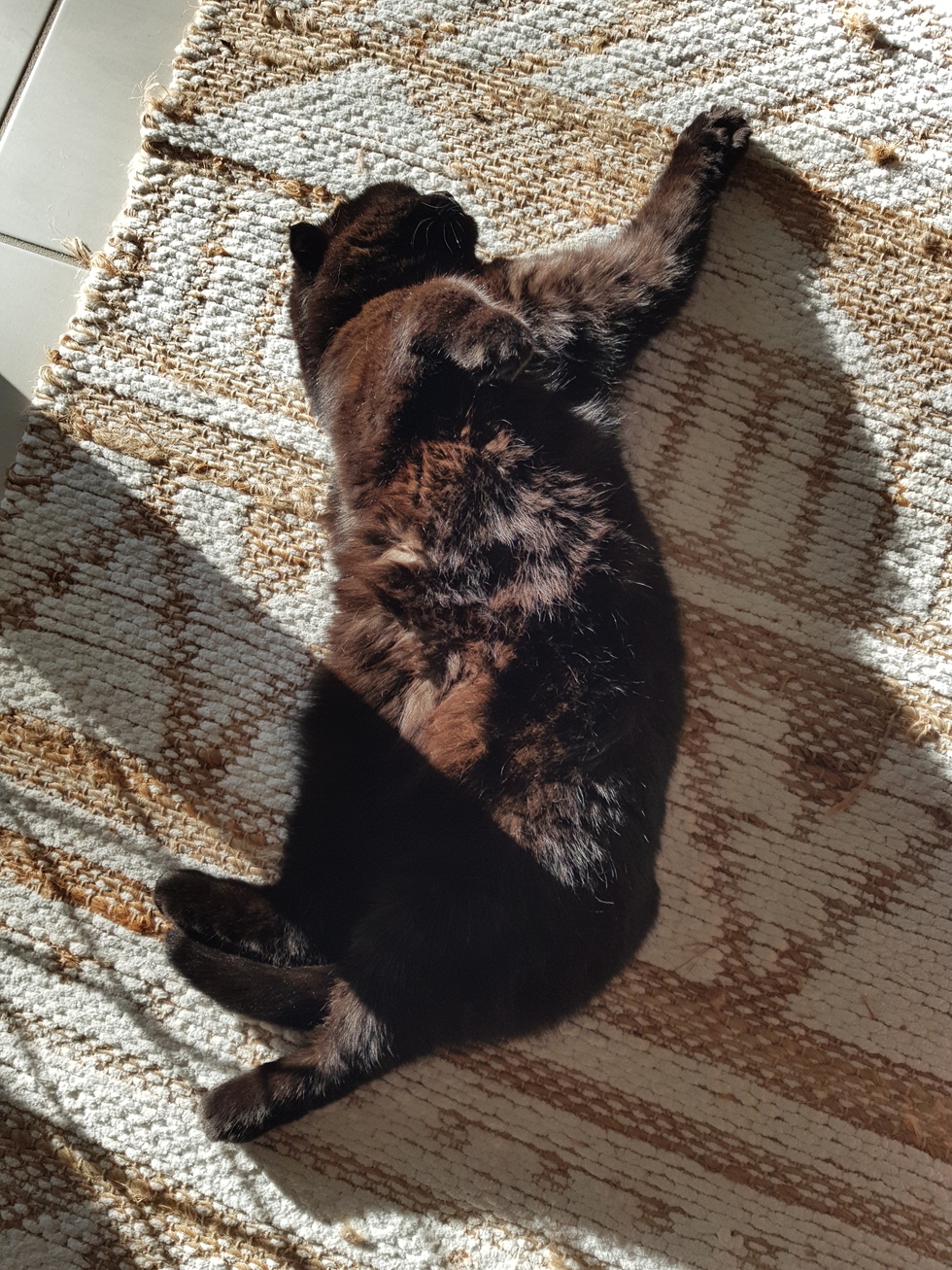 Pet's QuirksTilly loves sunbaking and this photo perfectly shows this.