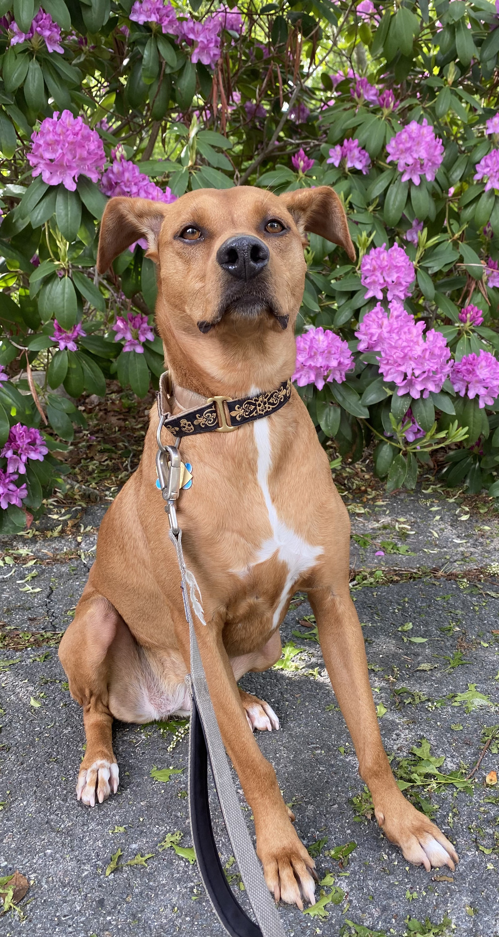 Ziggy loves to play ball, play tug with a rope toy, walk with her dog pals, and any treat you will give her! She dislikes cats, squirrels in trees near her house, and vehicles going too fast in her neighborhood (good girl!). Her parents are always working to improve her confidence with classes in agility and nose work. At the end of a long day, she loves getting cozy with her favorite people under lots of blankets.