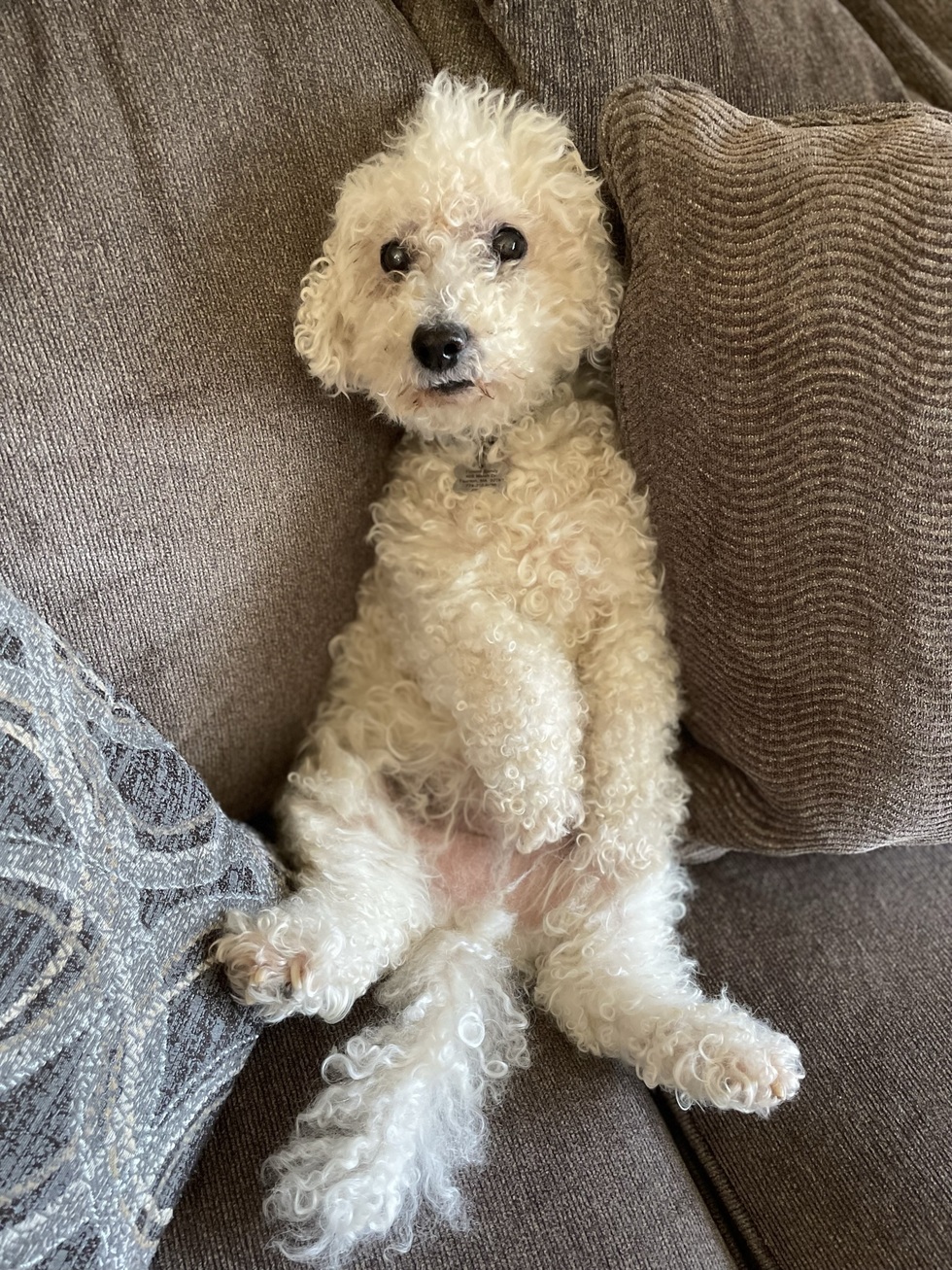 We adopted Ruffles from Ruff Tales Rescue when he was 15 and now he's 17. He came to us blind and deaf, but he is living his best life every day. He makes us smile all the time and brings joy to our home. Ruffles and I were talking the other night and he told me that he has always dreamed of being famous. I told him that it’s never too late and he shouldn’t give up on his dream. I think the best way to make his dream come true would be for him to win a spot in the 2024 RTR calendar. We love Ruffles very much & thank RTR for bringing him to us!