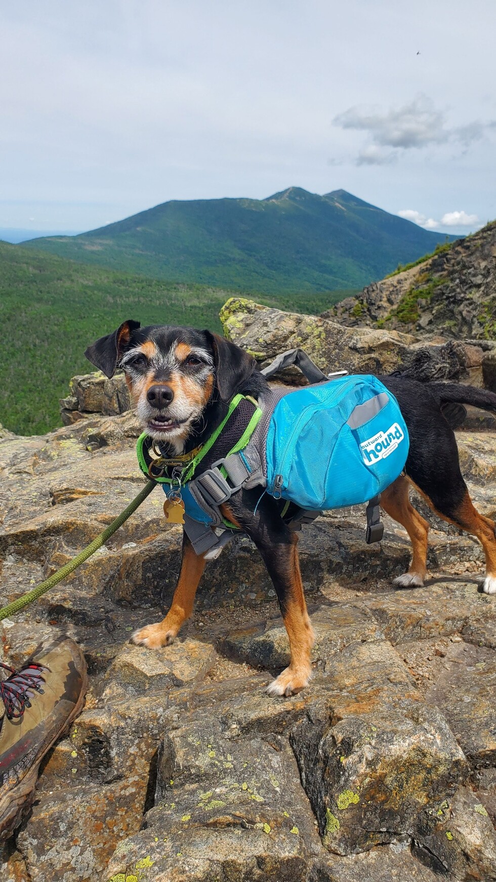 Topper loves hiking and has hiked 32/48 4000 footers in New Hampshire! When he isn't in the mountains, he loves to snuggle, "talk" to his pals in the neighborhood (he is part beagle after all) and enjoy as many treats as possible. He's a veggie lover and especially enjoys cucumber and arugula!