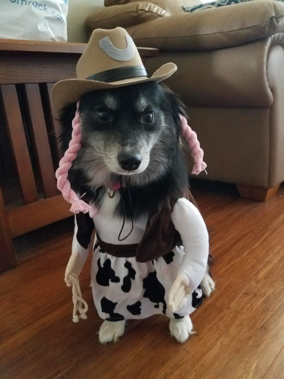 Stella is a Klei-kei husky, malamute mix. When she is not running and taking long walks, she is a cowgirl. She likes to herd her BFF Kyah.