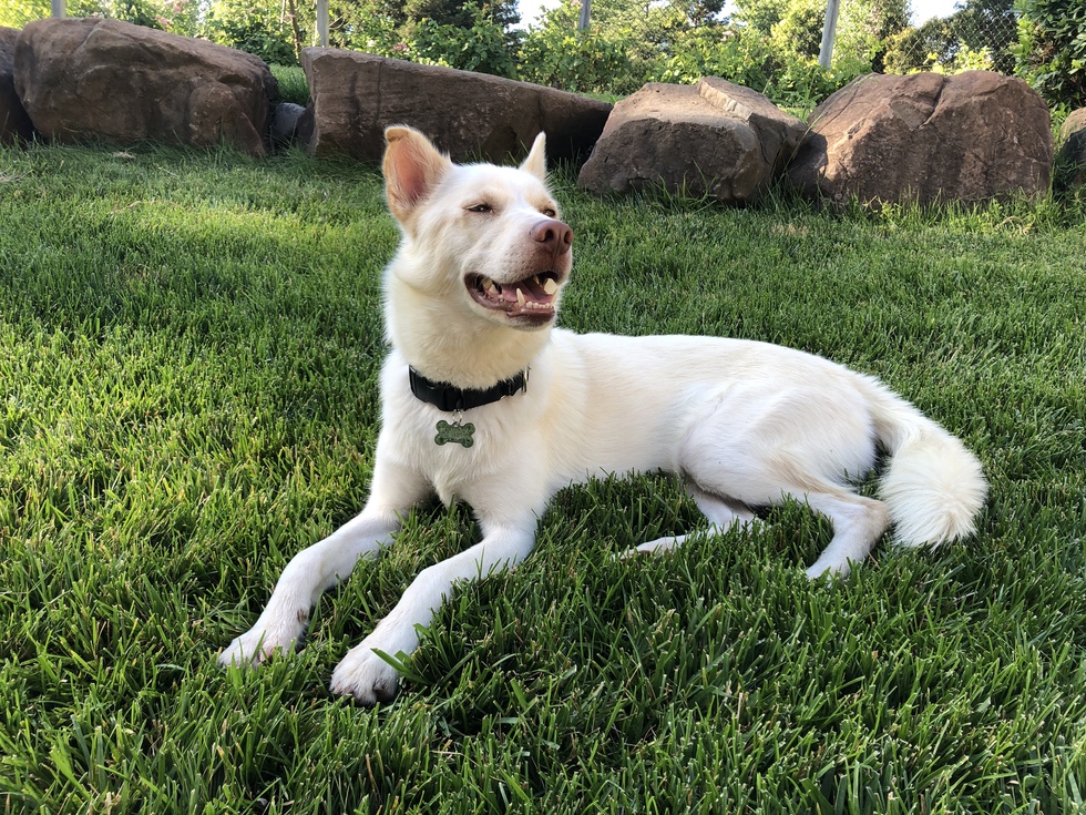 Finley (shelter name was Spirit!) was found in the desert by one of the SCCAS volunteers, he was extremely thin and unhealthy but the volunteer generously took the time to help him and brought him to a local shelter. After a few weeks, the shelter was going to close down and the volunteer drove all the way back to pick him up, and he ended up at the Santa Cruz County Animal Shelter! After spending three months at the shelter, Finley was placed with a foster home, where he spent three weeks until he met his forever family!
