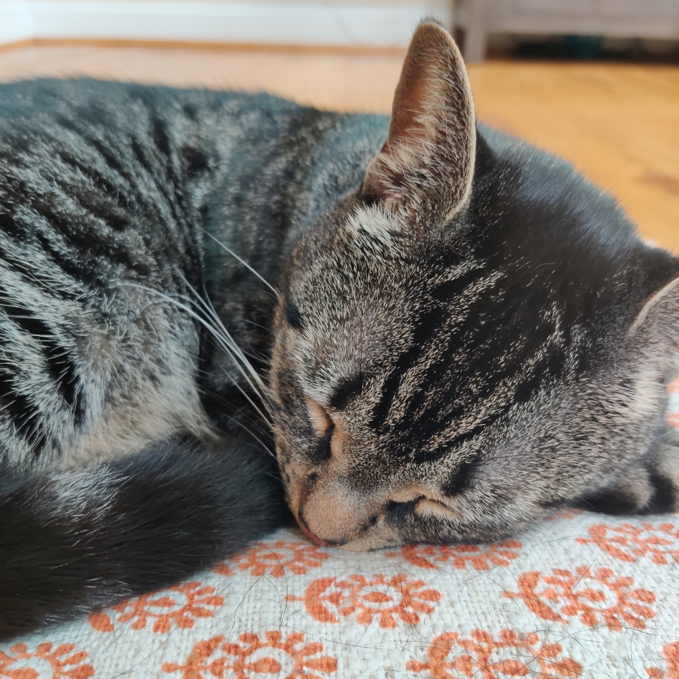 Fez was found under a truck in Santa Cruz with a broken leg as a kitten, but that has never stopped him from playing as hard as he possibly can. He's fully grown at barely six pounds, but still king of the house.