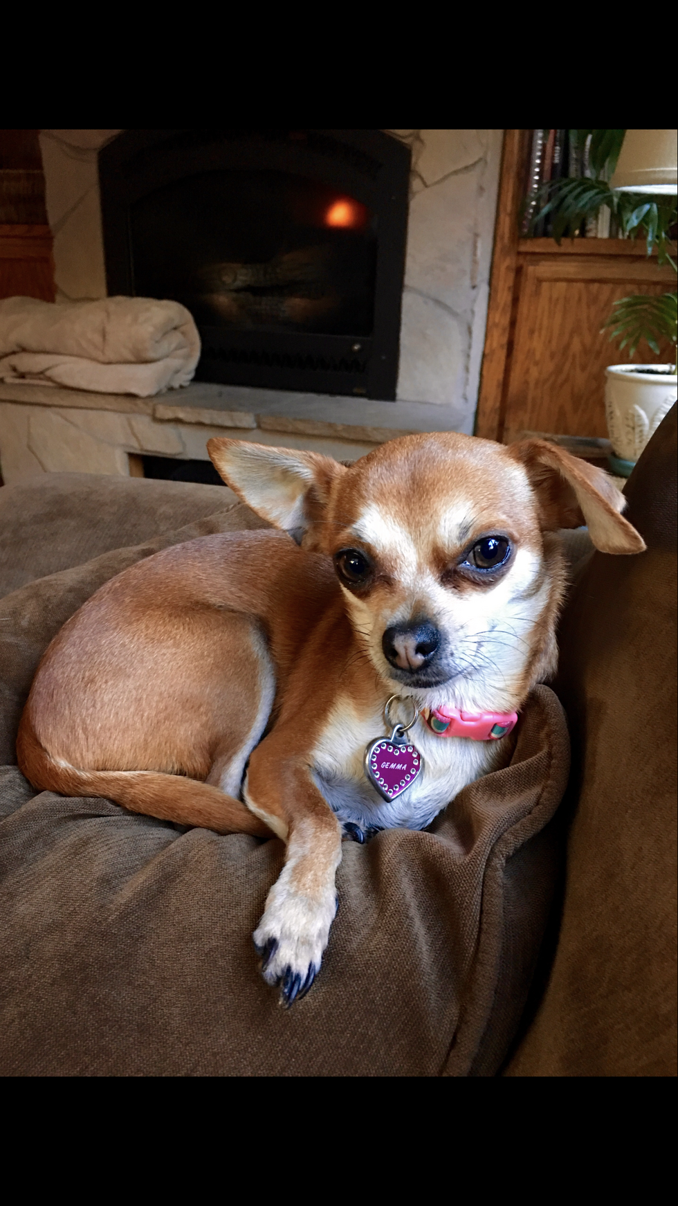 I adopted Gemma from the Santa Cruz animal shelter four years ago. She was four pounds, not potty trained and had no idea what a toy was. But she had a fierce spirit and blossomed into an amazing little dog that loves people, walks and fetches impecably! She is my little buddy and I am pretty crazy about her...😀