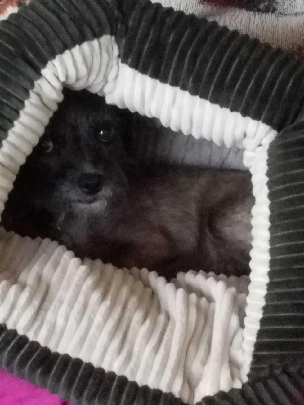 We adopted "Scout" from the Santa Cruz animal shelter in Nov 2017, we went 17 times none of the dogs seemed to get along with our whole family, we told one of the shelter employees she said you need to meet "Jilly Beans" she has the sweetest personality, she has skin issues (puppy mites) that we are treating.