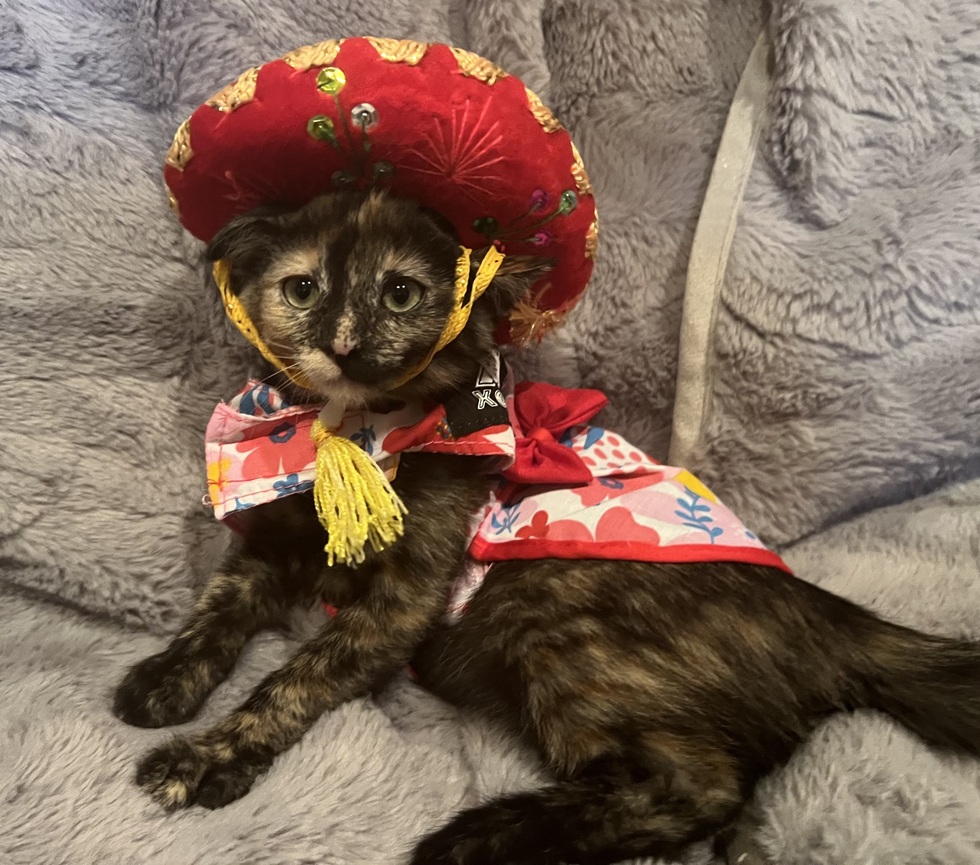 I am the foster parent to this little darling! This one is making it very hard to not adopt her! I’m still debating on that. In this pic she is preparing for National Hispanic Month. I think she’s ready.