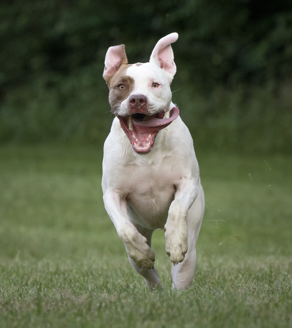 Possum was our first Saved By Fate Dog Rescue “foster fail.” He started life as a young pup living outside on a chain in rural Kentucky and was surrendered to rescue in June 2023. After 3 months of taking him to adoption events, and one failed adoption trial, we decided we couldn’t live without this goofy kid! Nowadays, he’s a frisbee pro and the best big foster brother to countless puppies.