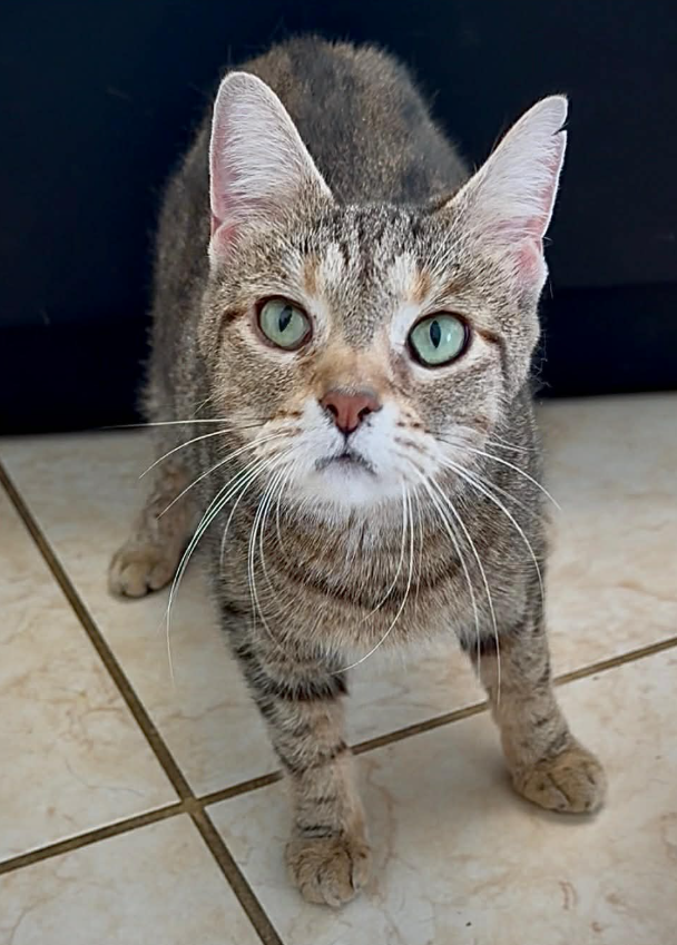 Tippy is somethin’ else—and she knows it! This adorable girl has Cerebellar Hypoplasia, often called “wobbly cat syndrome,” a non-progressive neurological condition that simply means her cerebellum didn’t fully develop. The result? A signature wobble that makes everything she does extra cute. It doesn’t slow her spirit one bit!