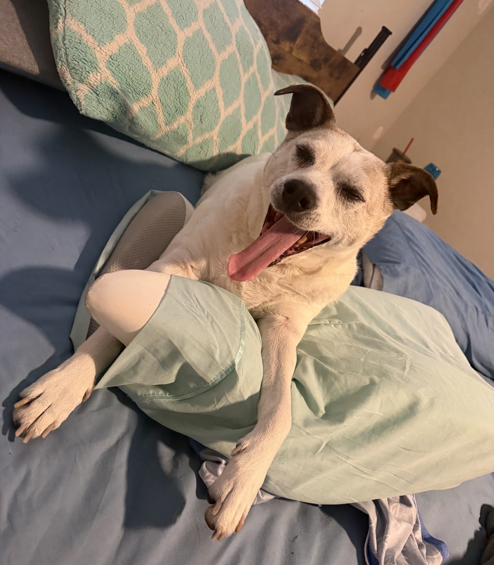 She’s incredibly smart, endlessly loving, and completely convinced she’s human. Whether she’s trying to catch things with her nonexistent opposable thumbs or insisting on being carried on my hip like a toddler, she reminds me every day how lucky I am to have her. She isn’t just my dog - she’s my heart.