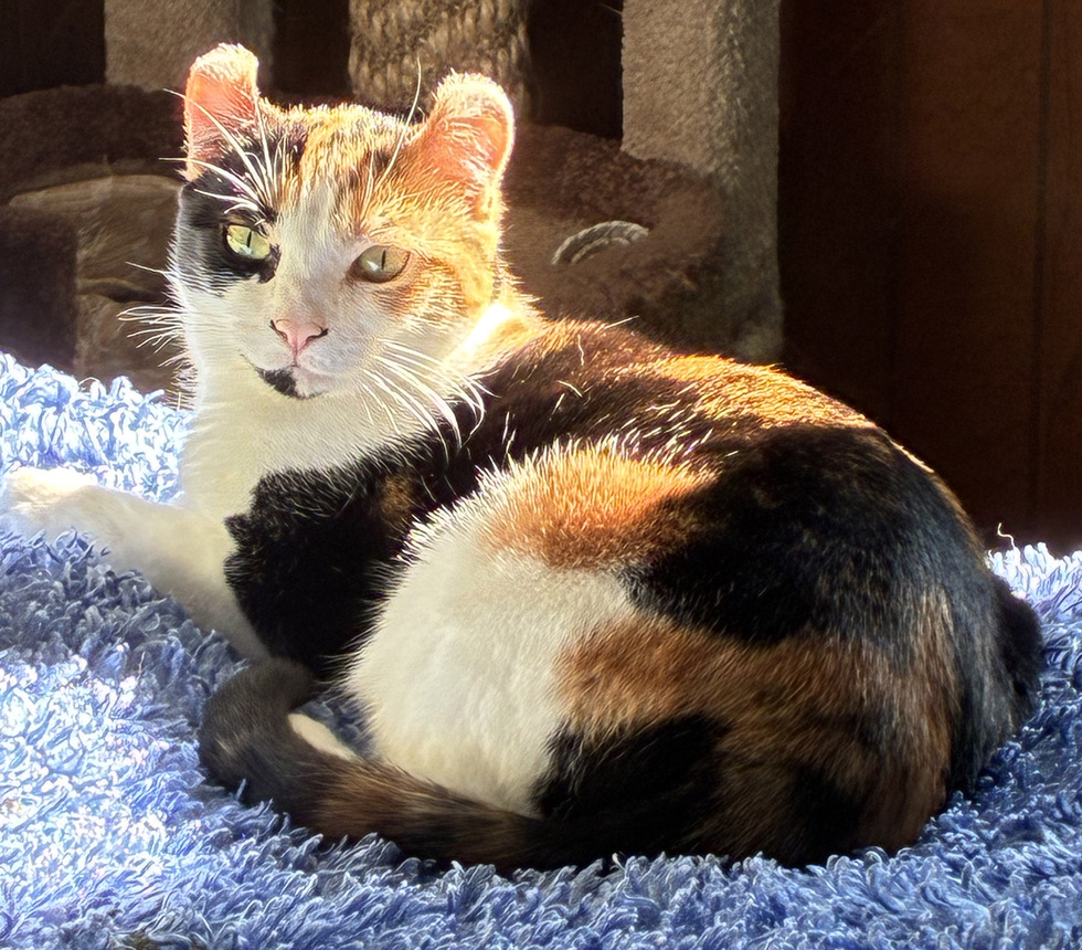 Your Pet's Story or BioBella is a 4 year old American Curl who joined our family in 2025. She has us brought joy, laughter and playfulness, as well as feline companionship to our other cats. She is smart, curious (can open cabinet doors), very playful and extremely loving.