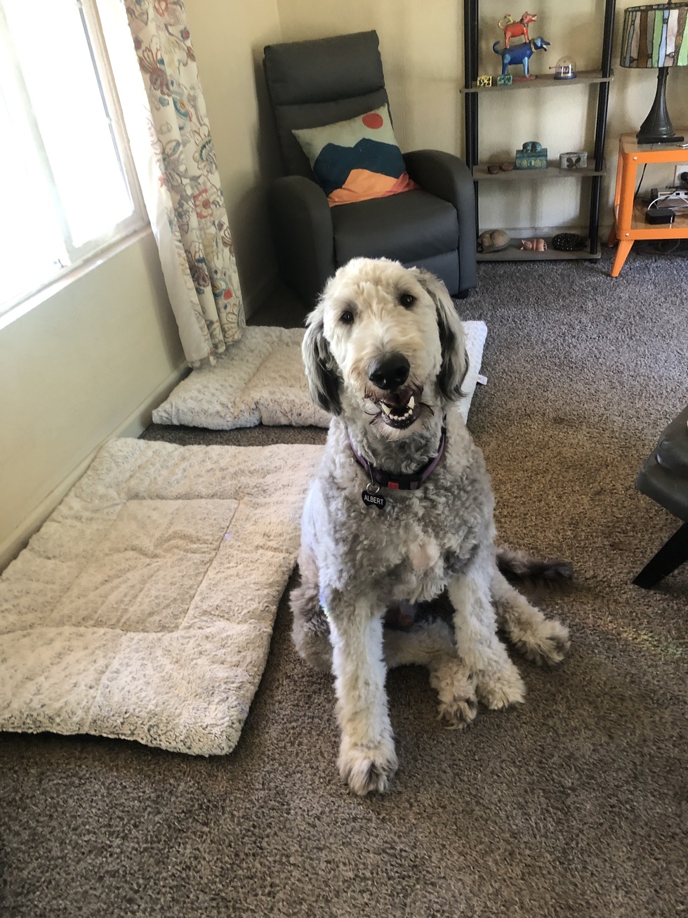 Your Pet's Story or BioWhen we left Saving Grace together Albert was 46 pounds. Fourteen months later he tips the scale at 100 and 31 inches at the shoulder! He is a major lover toward everyone he meets and a gentle guardian toward his 15 year old dachshund brother and elderly shepherd sister and me. Many thanks again for bringing us all together.