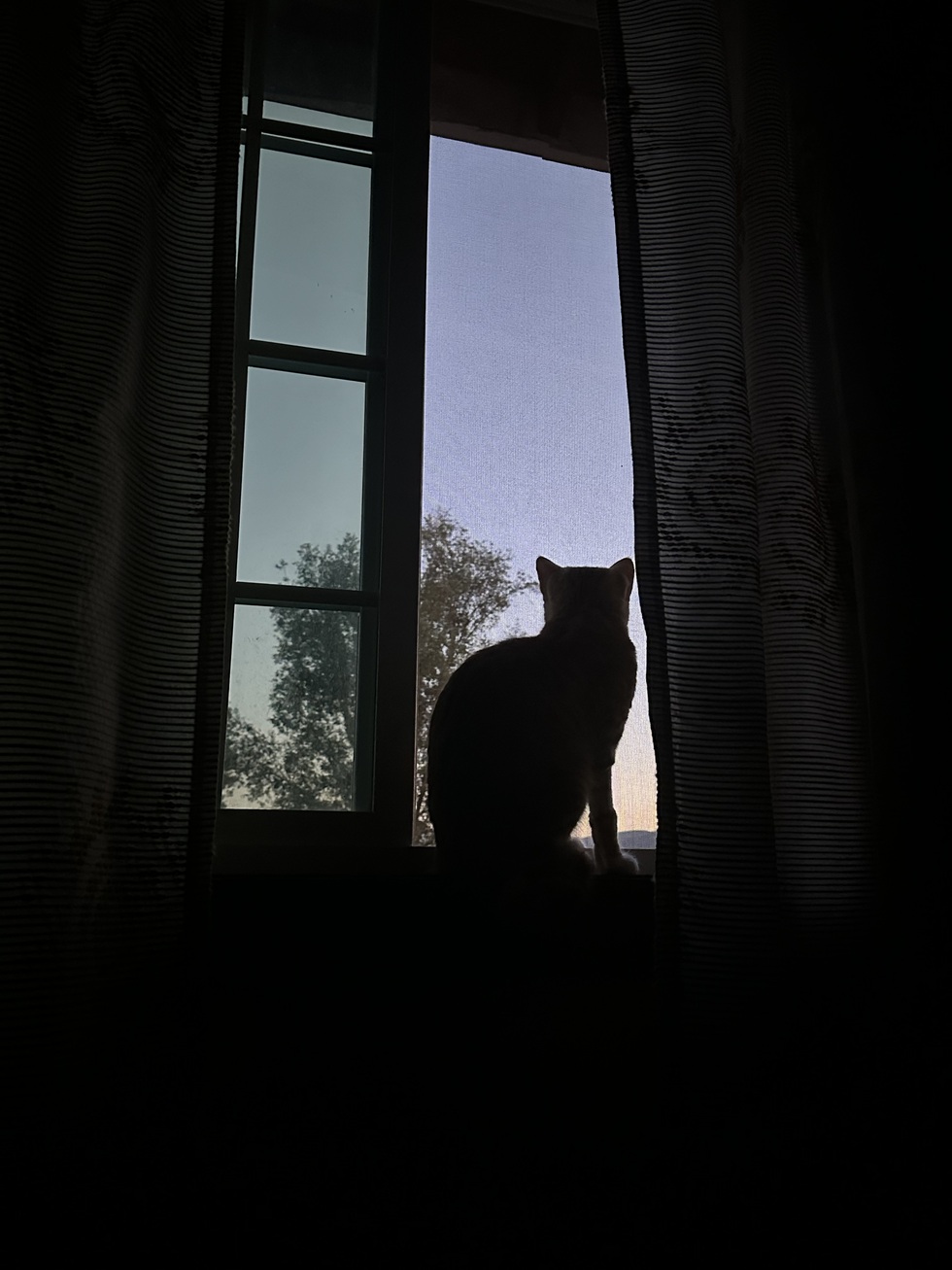 Pet's StoryRalphie was a baby barn cat along with his brother Potsy. When Potsy was killed by a Hawk we knew we had to corral lil Ralphie into our home. Luckily he likes to talk so we followed the sound of his meows and convinced him to be part of our home. He has never looked back! Now he is neutered with shots and happy as a clam. He loves to watch the evening sun go down out the window of my art room.
