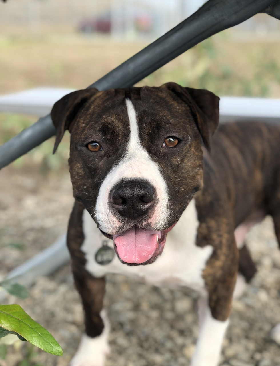 Benji was adopted from Seattle humane! He is the SWEETEST & most handsome pibble ever! He’s 3 years old, and loves his mom and getting the zooms in his yard with his sister Sadie!