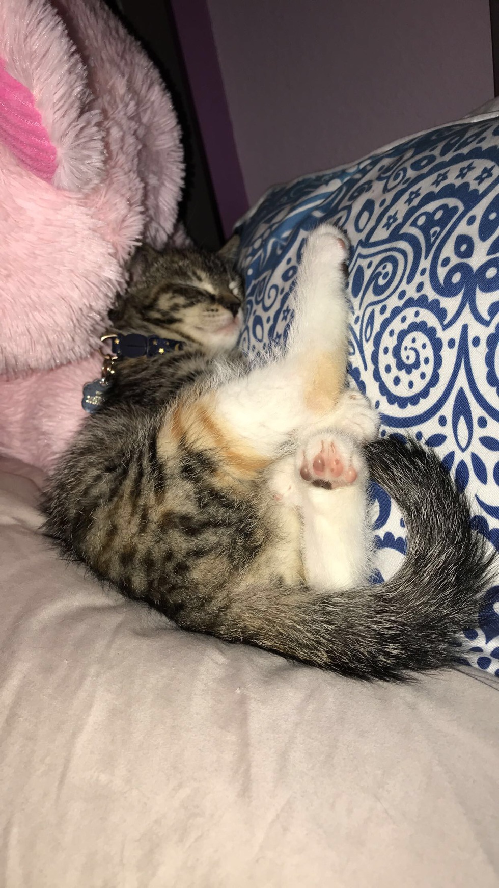 Tink is a spunky kitten with a spirit of gold! Her favorite activities are playing with charger cords, watching cars drive by, and cuddling up with her pink teddy bear.