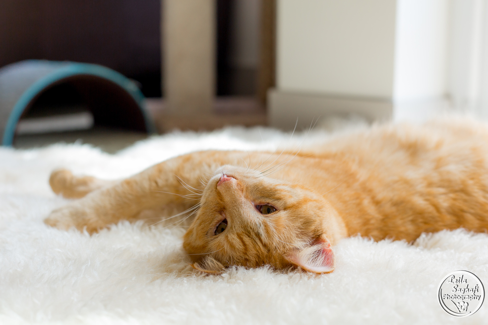 Buck was adopted from Seattle Humane in 2016. I was working as a cat socialization volunteer, and it was love at first sight! I ended up spending almost all of my 3-hour shift just getting to know him. Bucky kept jumping into the condos I was trying to clean, and doing absolutely everything he could to keep 100% of my attention, he would even pick up toys and drop them in front of me. I made sure I was #1 on the list to adopt him, introduced him to my family, and the rest is history! He's been my favorite photography subject ever since. In this photo, you can see his best "pay attention to me" post.