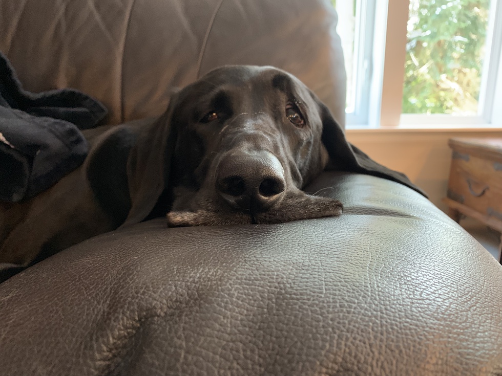 Pet's Story or BioAngus loves naps on the couch and quickly melts when you pet him to sleep