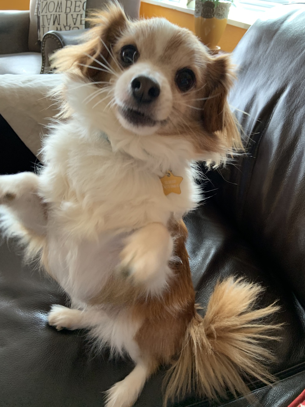 Marlowe came to us from a hoarding situation with a total of 70 little Chihuahua mixes. He has come along way but is still a bit shy. He is a super sweet dog and seems super happy and content in his new life.