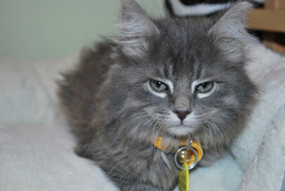 We wanted a Maine Coone but when we went to the Seattle Humane center, we brought home this grumpy little fur ball instead! Five years later, he's a 20 pound Maine Coone and very very happy!