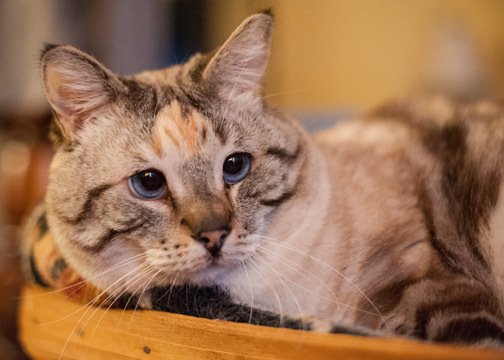 Isabelle is a Rag Doll that we adopted from Seattle Humane. She is pretty much a homebody that rarely leaves the bedroom. Her squeaky meow is so funny when issuing out of her rather rotund bodyl