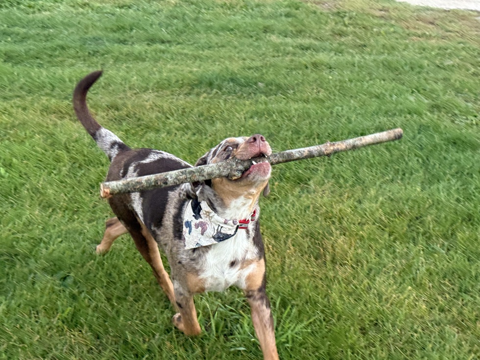 We rescued Max in January 2025 from Second Chance Animal Shelter. He is a 1 year old Bernese Mountain Dog/Australian Shepherd/Redtick Coonhound mix. Max’s hobbies include playing fetch, going on side by side rides and playing with his toys.