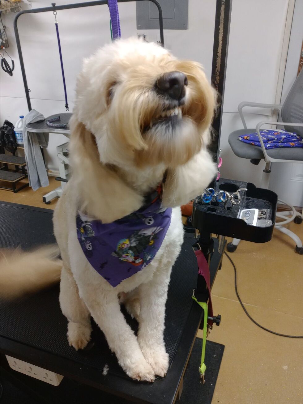 I love my Groomer. Sometimes she takes a picture to show other customers and my owner how good I look. She was so sweet today that when she said “Smile”, I did!!