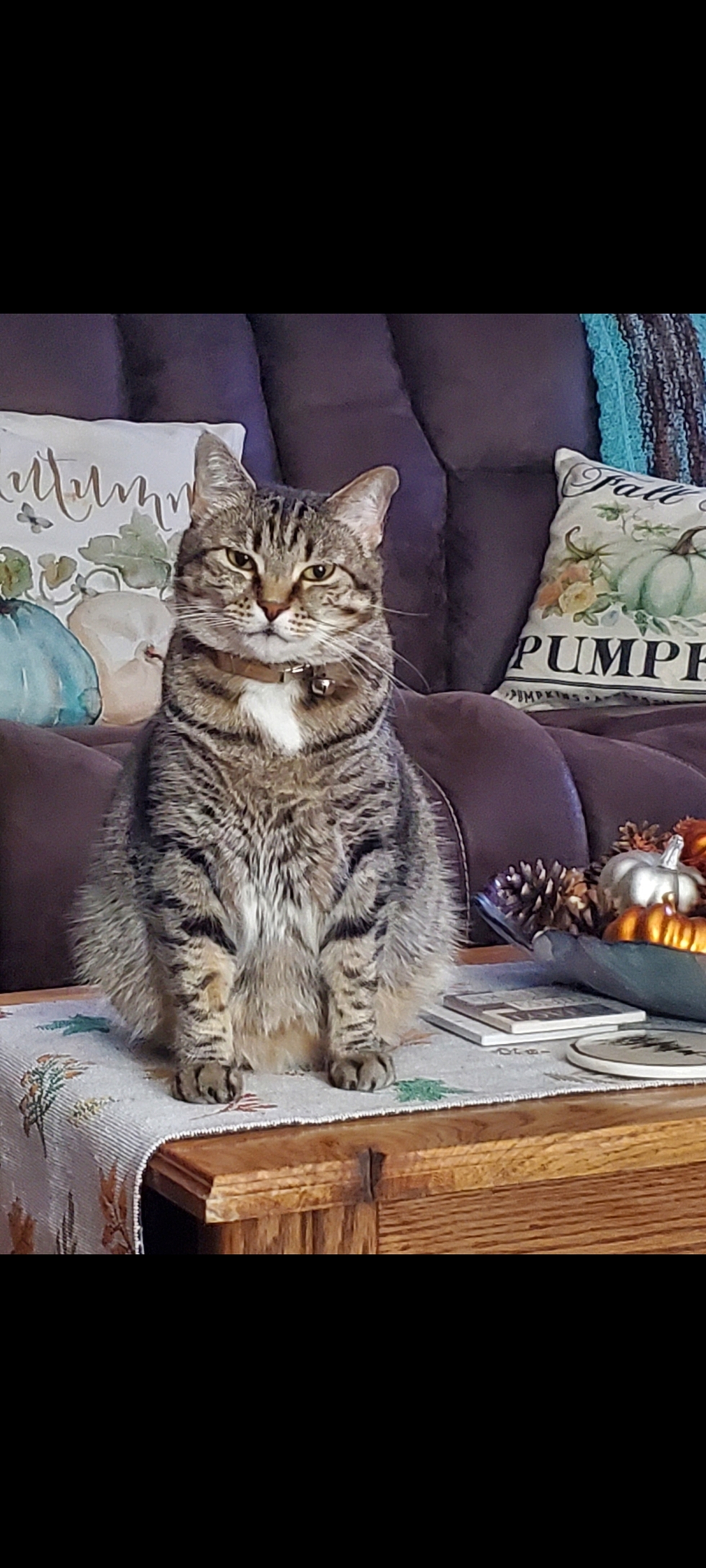 Lilly came to is as a pregnant stray 4 yrs ago. We took her in, and she and her kitties are spoiled and loved every minute. She is so sweet, loves chasing peacock feathers, and makes our days brighter! Please vote for Lilly.