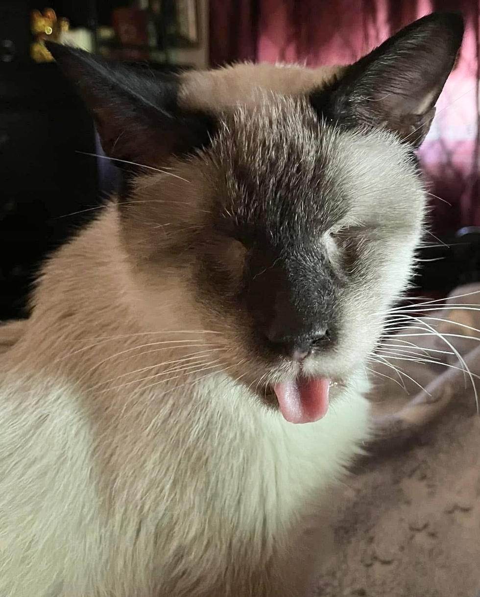 My name is George! I was born without eyes! I lived in the briar bushes behind Roma’s! They kept me fed but knew I needed a better life! I thought I was doing pretty good lol but now I'm the official mascot at Forever Friends Humane Society in Sallisaw!