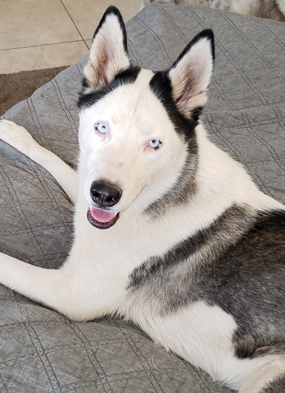 My wife and I had been contemplating adopting a dog for a little while, our 11 year old husky has been receiving chemotherapy for treatment of lymphoma and just have the energy to play with our other dog anymore, we saw Diamond was up for adoption at Shadow Husky Rescue. Diamond was in a loving home but her owner worked up to 16 hours a day while Diamond was left in her crate all day, he new she needed a better life than that and decided to reach out to Shadow Husky Rescue to help place her in a good home. I think that we really rescued each other because now Diamond would have room to run all day long and Aspen, my lab mix, would now have a playmate that could keep up with her. Diamond did not disappoint, she is loving and full of that husky energy and has been an awesome addition to our family