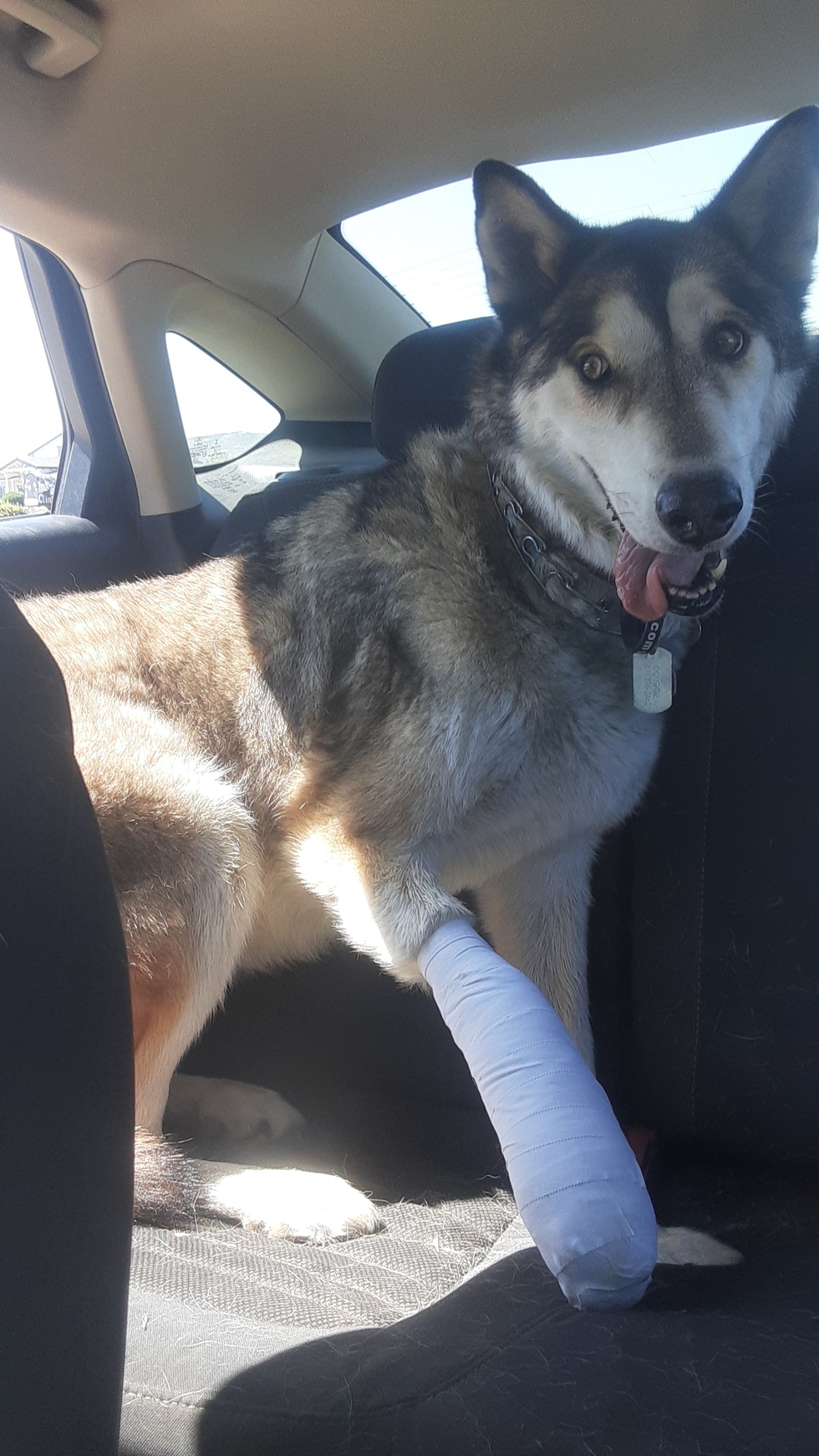 Well Doogie came to me October 15th 2013 he hop my fence in Angelus Oaks California up in the mountains I had a dog kennel up there I won't say how many dogs cuz then people get upset do he wanted to play and he stayed he runs away from no matter where you are I had a 7-foot fancy still opted hopped the fence I put the fence up the 9ft still got out but up there I know he would come home but then when we moved to Menifee got out three or four times one time he was gone five days second time is gone 10 days he's chipped all his tags is fixed but it just loves to run move to Lake Elsinore he got away three times last time he was gone for days and he swam around the point in the lake swam about a mile and a half hope this guy's fence you said it's 6 ft anise plant cuz he's got a broken front paw he's an honorable husky even though he's a wolf Malamute mix I'm going to get him a GPS collar as soon as I can get the money