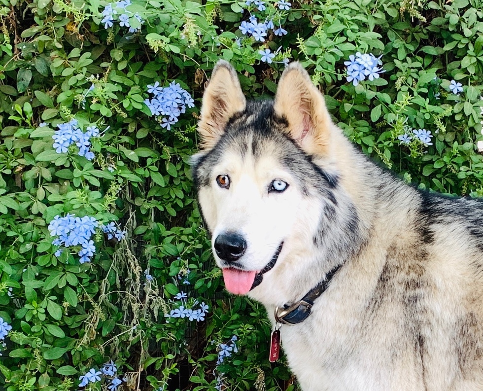 He is shy and reserved. He does have an alter ego as most huskies are secretly superheroes. Flash the Flying Race Dog makes an appearance occasionally with zoomies and trampoline dog high jumps on the bed!