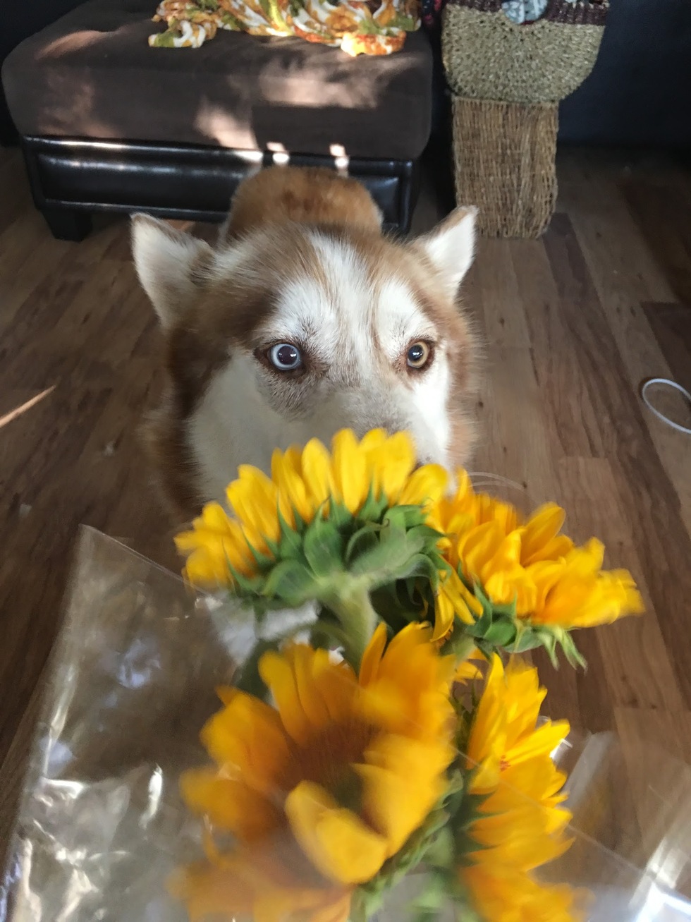Sonny Loves to stop and smell ALL the flowers on our miles long hikes.