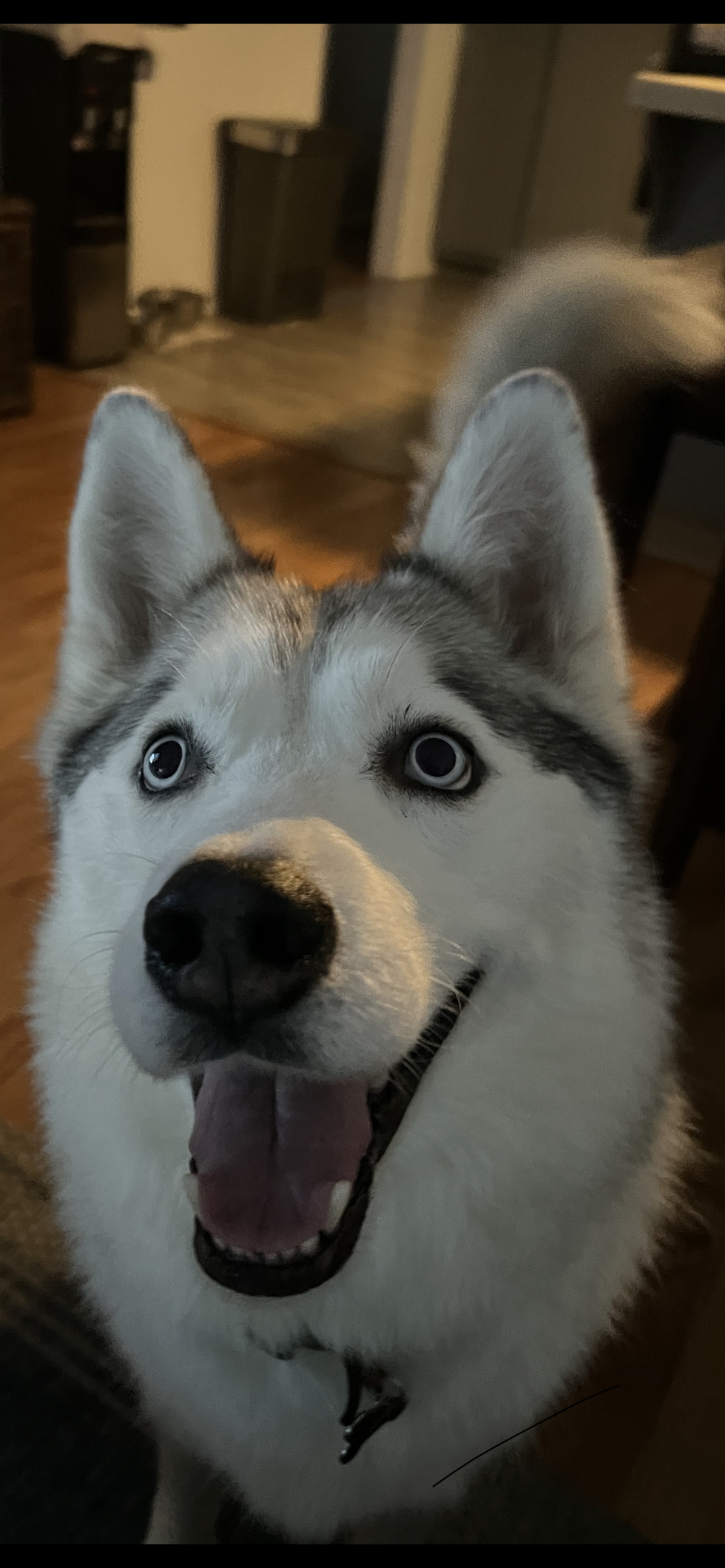 Lenny came to us very skinny and scared. We were not to sure if he was the right fit, since we already had a female husky. He stayed with us for 6 weeks, and we just could not give him back! He’s an amazing loving dog! And VERY happy!