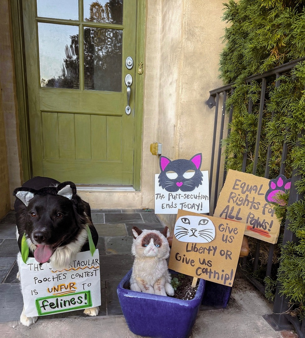 Add a short description of your photo or about your pet.Nine lives and zero rights? “Not anymore,” says Dallas, a Border Collie mix and proud Cat-vocate fighting for feline equality in Shelby County. Armed with protest signs and an Angry Cat stuffie, Dallas is barking for justice and equal access to the Spooktacular Pooches Halloween Contest. “I was born in the woods of a small town in Walker County,” explained Dallas. “There’s no such thing as paw-rivilege out there. That’s why I’m leading the Meowvement. United we stand, divided we shed.”