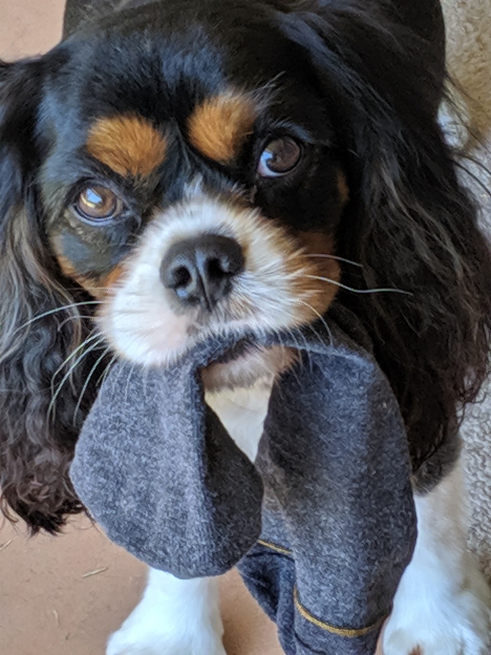 Cedric moved from the urban beach to the rural mountains in January and is loving his new life. His hobbies include barking at deer through the window, wading in lakes, walking in flurries, trying to own every tree in the forest, and cuddling with his humans. Cedric loves everyone and wants all the pets. His favorite treat is beef liver bark, and his favorite toy is a freshly worn sock.
