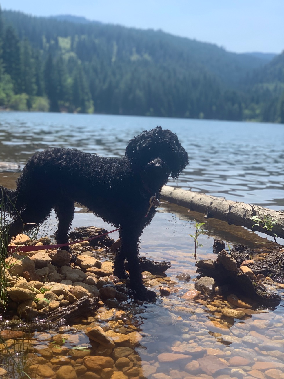 Shasta is a mini labradoodle. She was born in Medford and now lives in Weed. She loves chasing squirrels (never catching them), belly rubs and kayak rides on Lake Siskiyou.