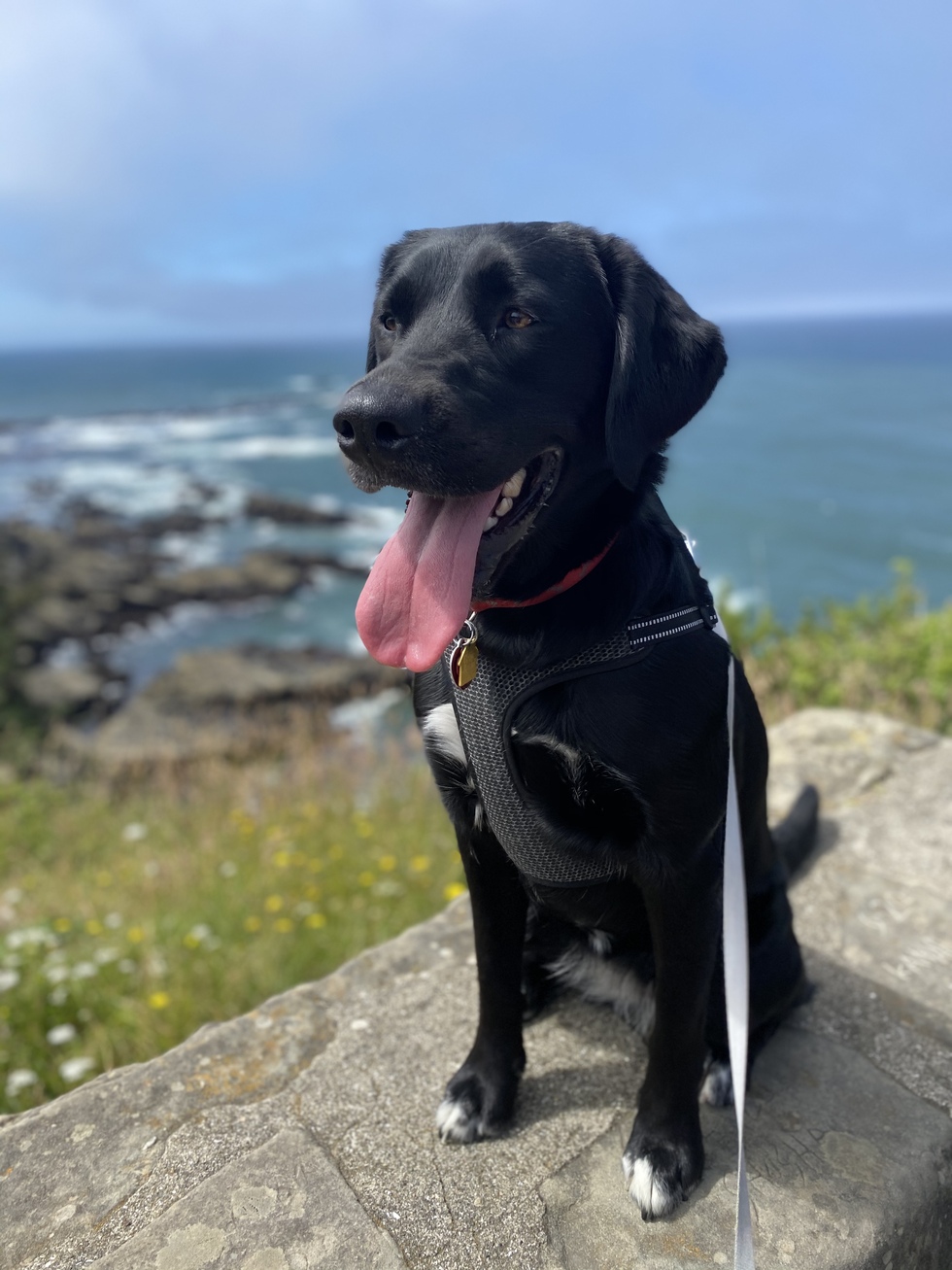 Dakota is a 2-year-old Black Lab/Bernese Mountain Dog mix. She enjoys bath time, walks on the beach and at the park, hiking, and chasing lizards in the backyard. Dakota recently graduated from beginner puppy school at the top of her class. She was the last of her brothers and sisters to be given a home. Her mom, Katie, loves her very much.