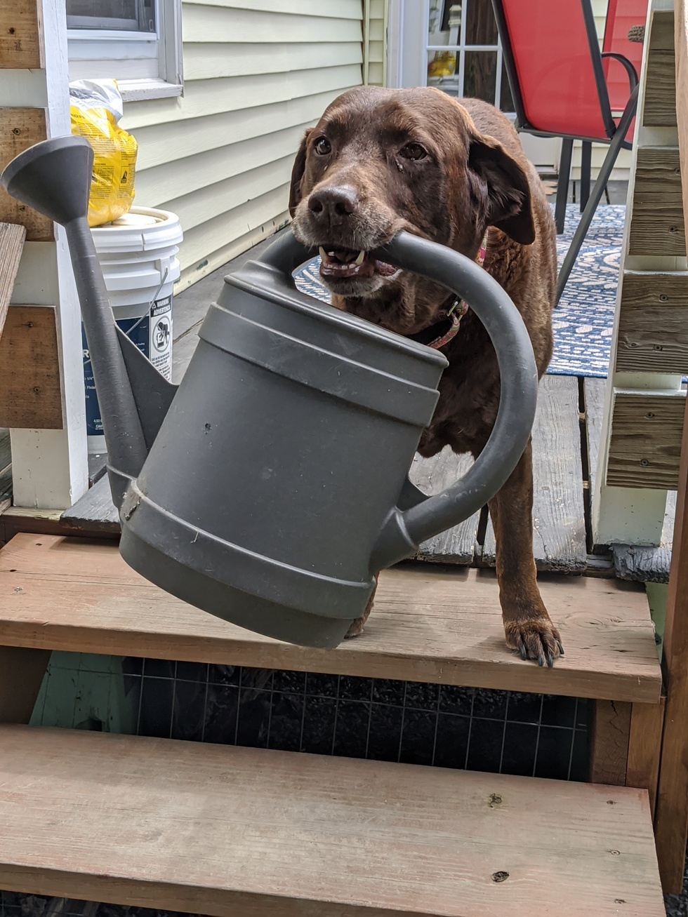 THIS IS MY BEST GARDENING HELPER ALTHOUGH THE WATER USUALLY GETS DUMPED OUT OF THE CAN!
