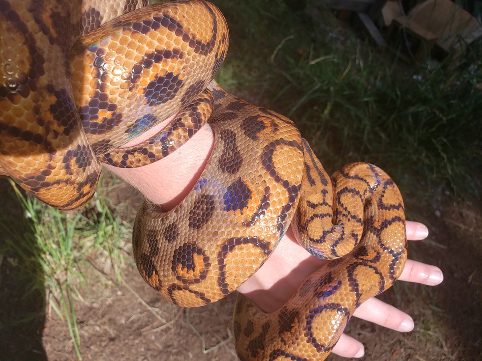 Meet C.C.! She is a six year old Brazilian Rainbow Boa that came from the wonderful people at the Nor Cal Herpetological Society down in Sacramento. When she's not all curled up (or hiding under her favorite rock) she's about 5.5 feet long, and her scales have a beautiful iridescence to them. Brazilian Rainbow Boas have a tendency to be "nippy" or strike at people in defense due to their jumpy nature so C.C. (if not respected and handled right) could bite, but she's a gentle giant and once she's comfortable with you all she wants to do is snuggle and stay warm. Vote for this pretty lady- rescues can be snakes too!