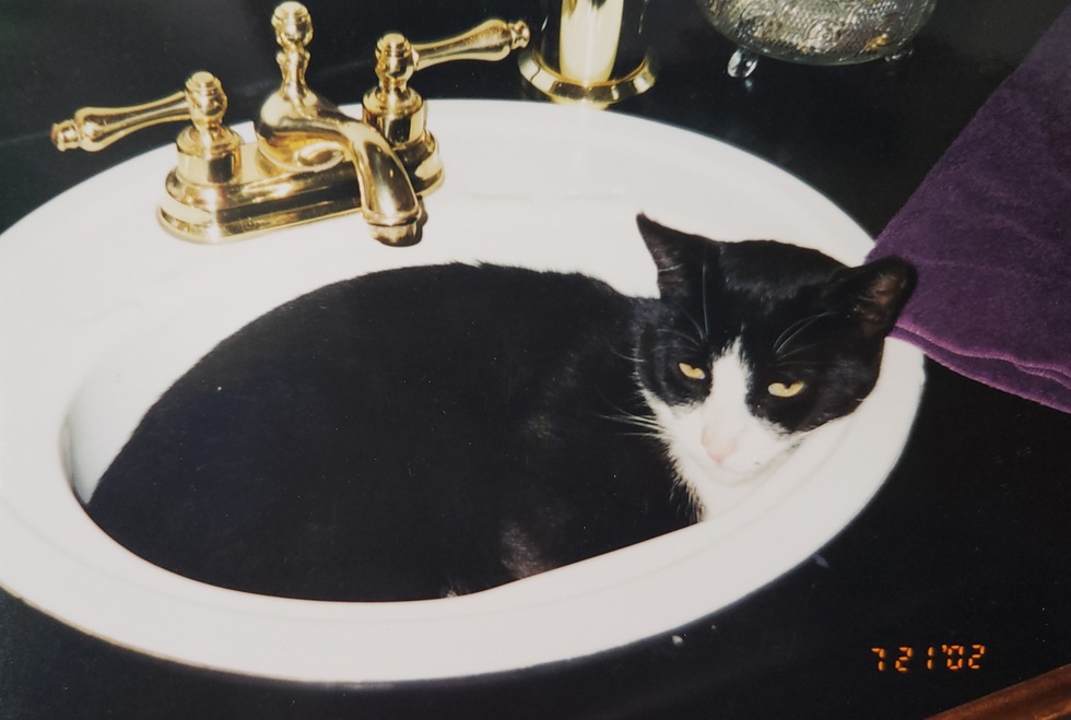 The boy, his mother was pregnant and abandoned, she gave birth between the mattresses of a trundle bed. Each furbaby found a home, with the exception of The Boy... He had the largest nose so he was ours! He is not over the "Rainbow Bridge", but he was The Boy.