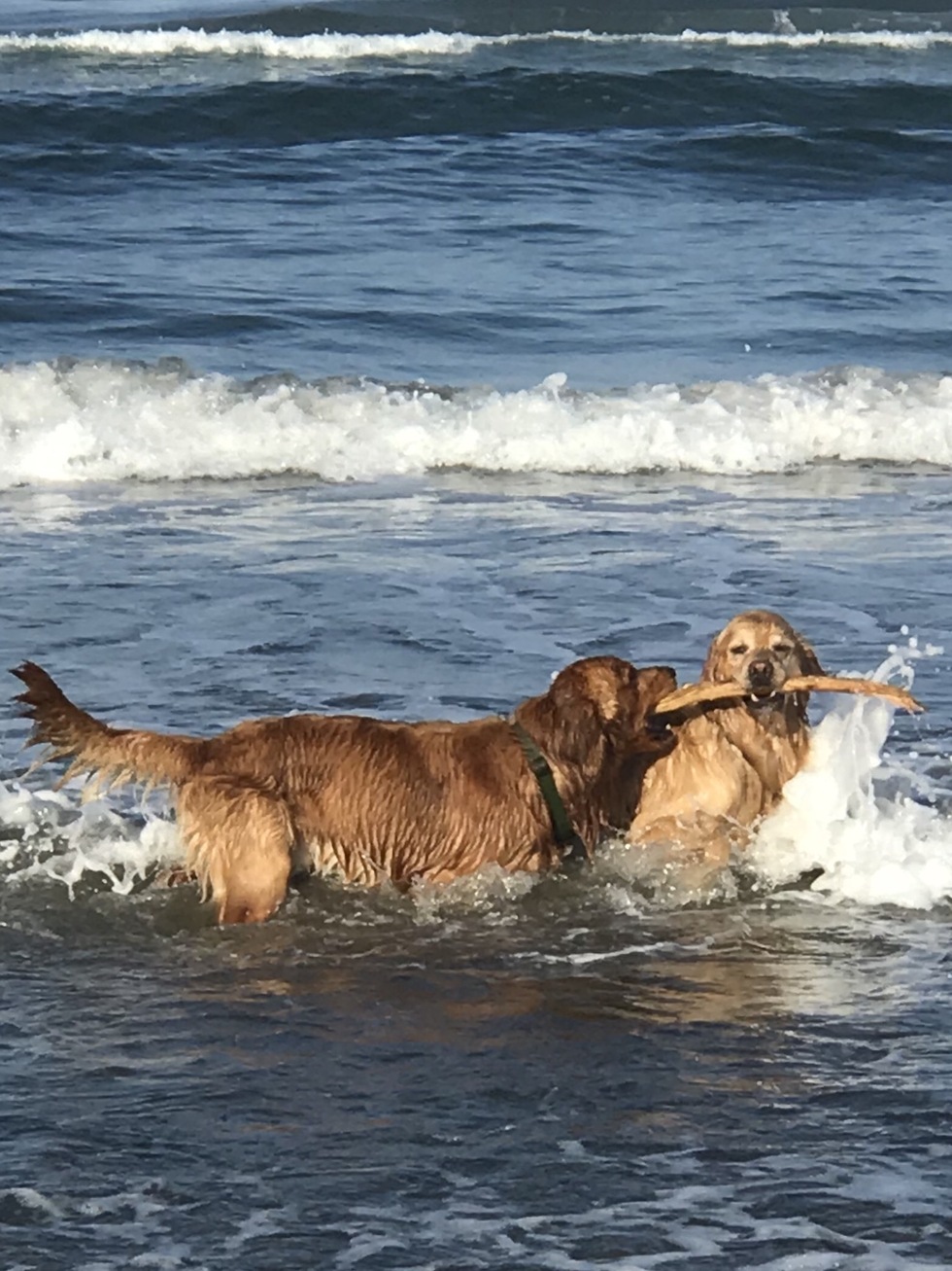 We are Rooney and Jagger. Our human parents rescue dogs like us because they think that it’s the right thing to do. We just know that we have a really good time now, especially when we are anywhere near water.