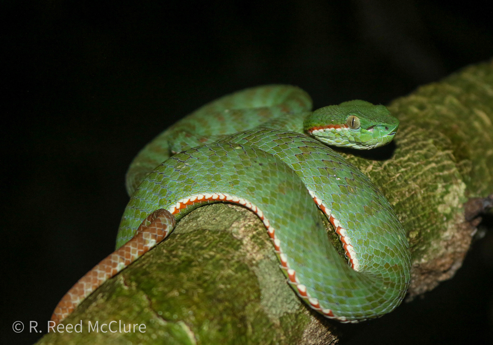 The Sabah Pit Viper ranges down the Malay Peninsula from Myanmar & Thailand southward thru mainland Malaysia then on to the Islands of Borneo & Sumatra. These gorgeous pit vipers exhibit sexual dimorphism in both size and pattern. Pictured is an adult Male from Surat Thani, TH.