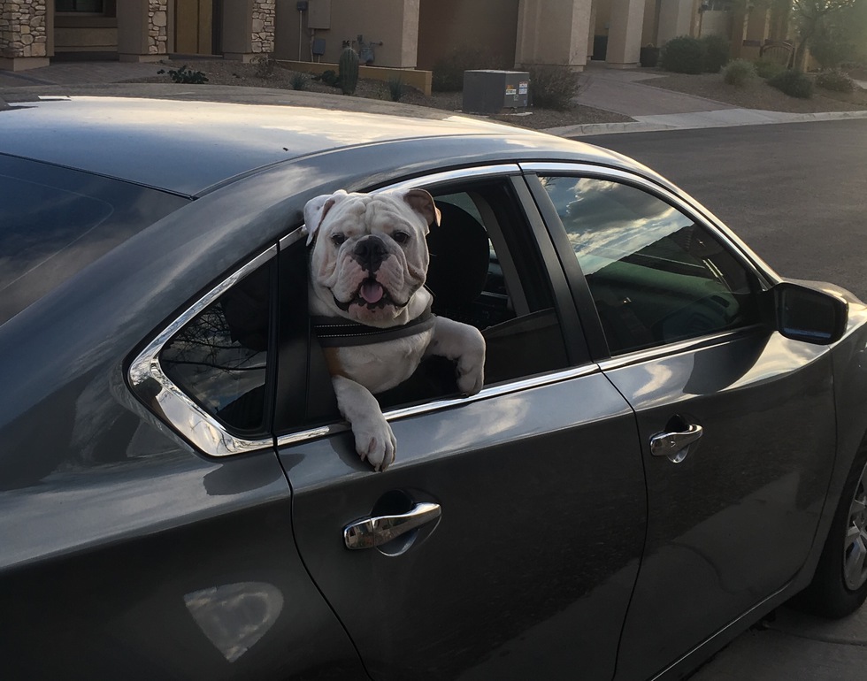 My name is Smalls and i'm a huge supporter of SoCal Bulldog Rescue. This is me traveling around doing my philanthropy work at local high schools and senior living facilities.