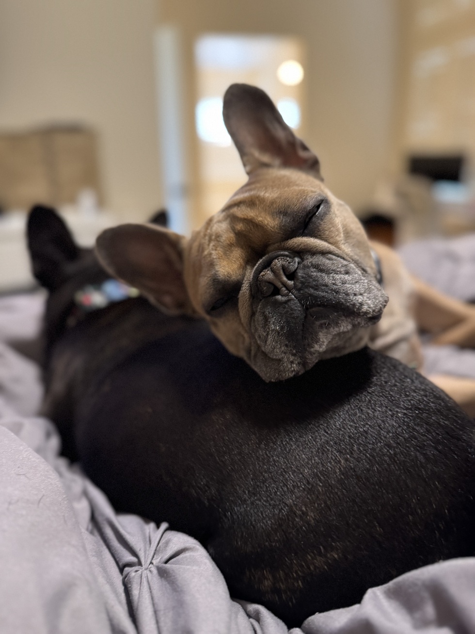 Bella and Mel were both adopted through SoCal French bull dog rescue. They are an amazing addition to our family. They both love each other dearly and balance each other out. Mel is the calm and peaceful one whereas Bella has the energy that could last for days.