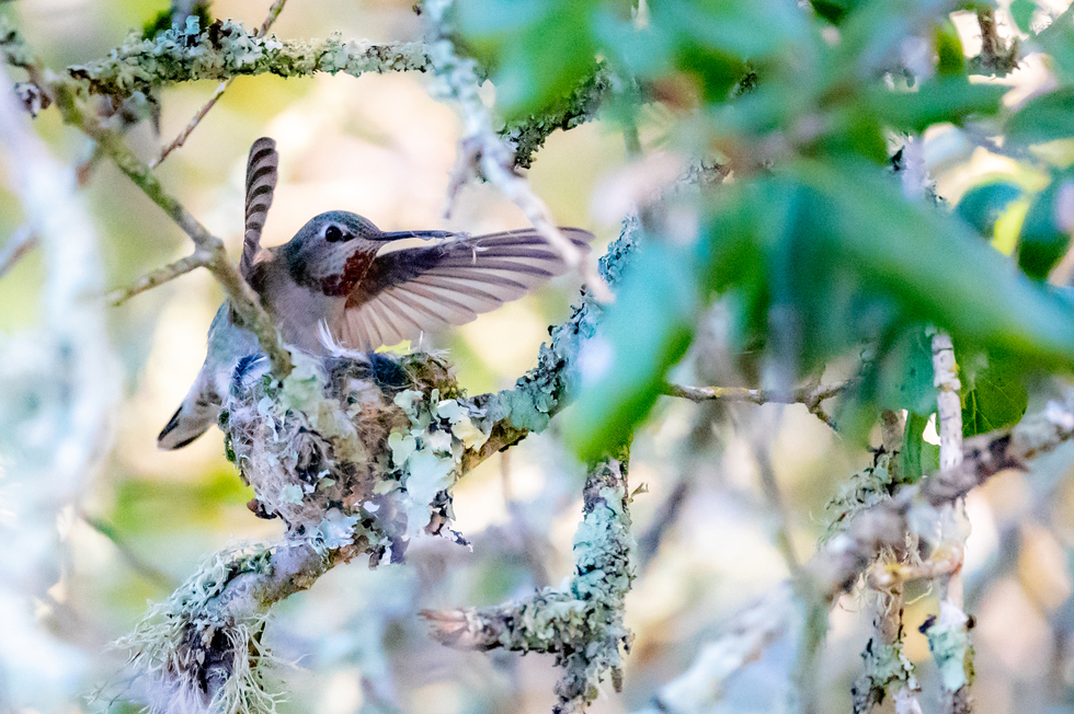 While waiting for an egret to take flight, I noticed this mama hummingbird zooming back and forth. Upon closer inspection, I noticed that she was putting the final touches on her nest located at Foothills Regional Park.