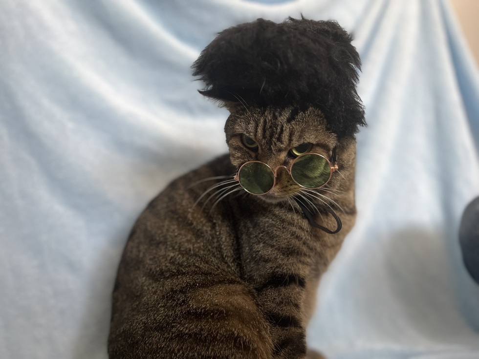 A little about me...Bilbo was a foster of mine who was on a special diet. As a special-needs boy, it was hard for him to stand out at adoption events in a sea of tiny kittens, so to get help draw attention to him, we dressed him up and he actually loved it! After about a year in foster, he got adopted and is now living his best life with his two human guardians and his two dog siblings.