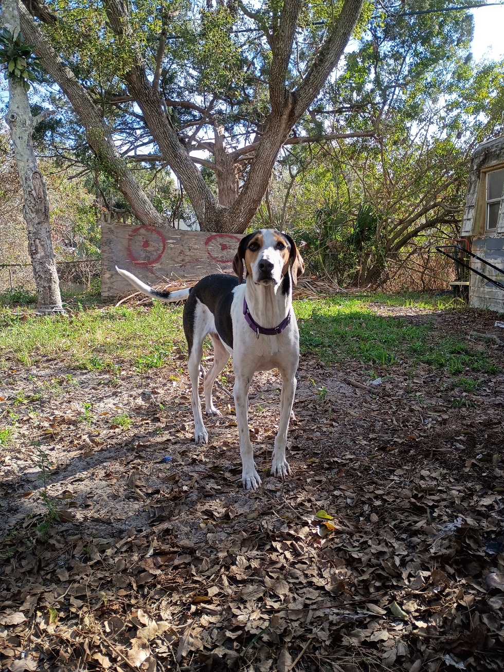 I adopted Doom as a puppy from the SPCA Adoption Center a little over 3 years ago. She taught me patience and understanding before having my 2 kids, who she is absolutely wonderful with. Cats are her favorite playmate, and she loves a good duck shaped stuffie. Yodeling and running are her favorite sports. Doom looks for adventure, everywhere. She loves her doggie best friend, Lightning, and running around the back yard (and stealing snacks from) her favorite human, a 2 year old little boy. She's given me a run for my money on multiple occasions, as anything can be a snack if you try hard enough!